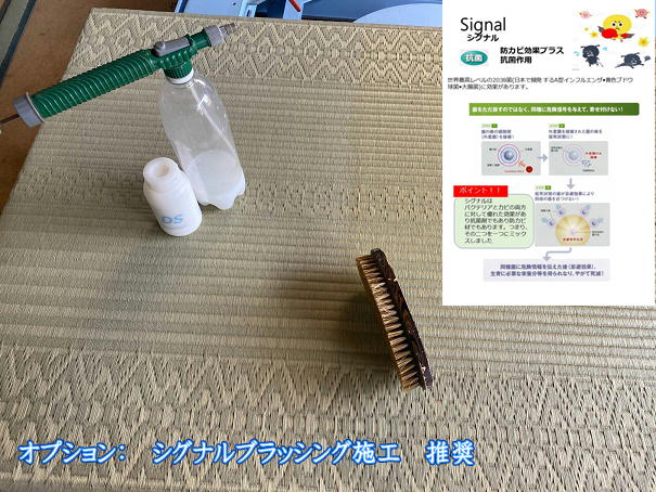 裏返し修繕にお薦め「シグナルにてブラッシング」施工はカビ菌にも効果あります。世界最高レベルの2038菌(日本で頻発 するA型インフルエンザ•黄色ブドウ球菌•大腸菌)に効果がある、ウイルスをただ殺菌するだけではなく、同種に危険信号(シグナル)を与えて寄せ付けない!